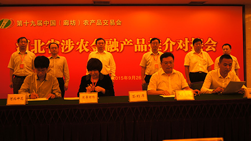 2015年9月26日人壽財(cái)險(xiǎn)、省涉農(nóng)金融對接會現(xiàn)場簽約。
